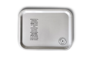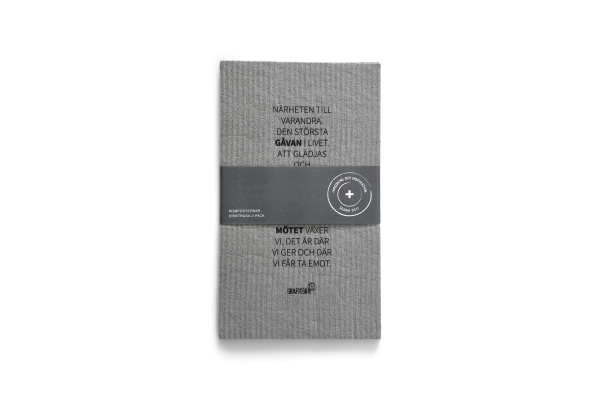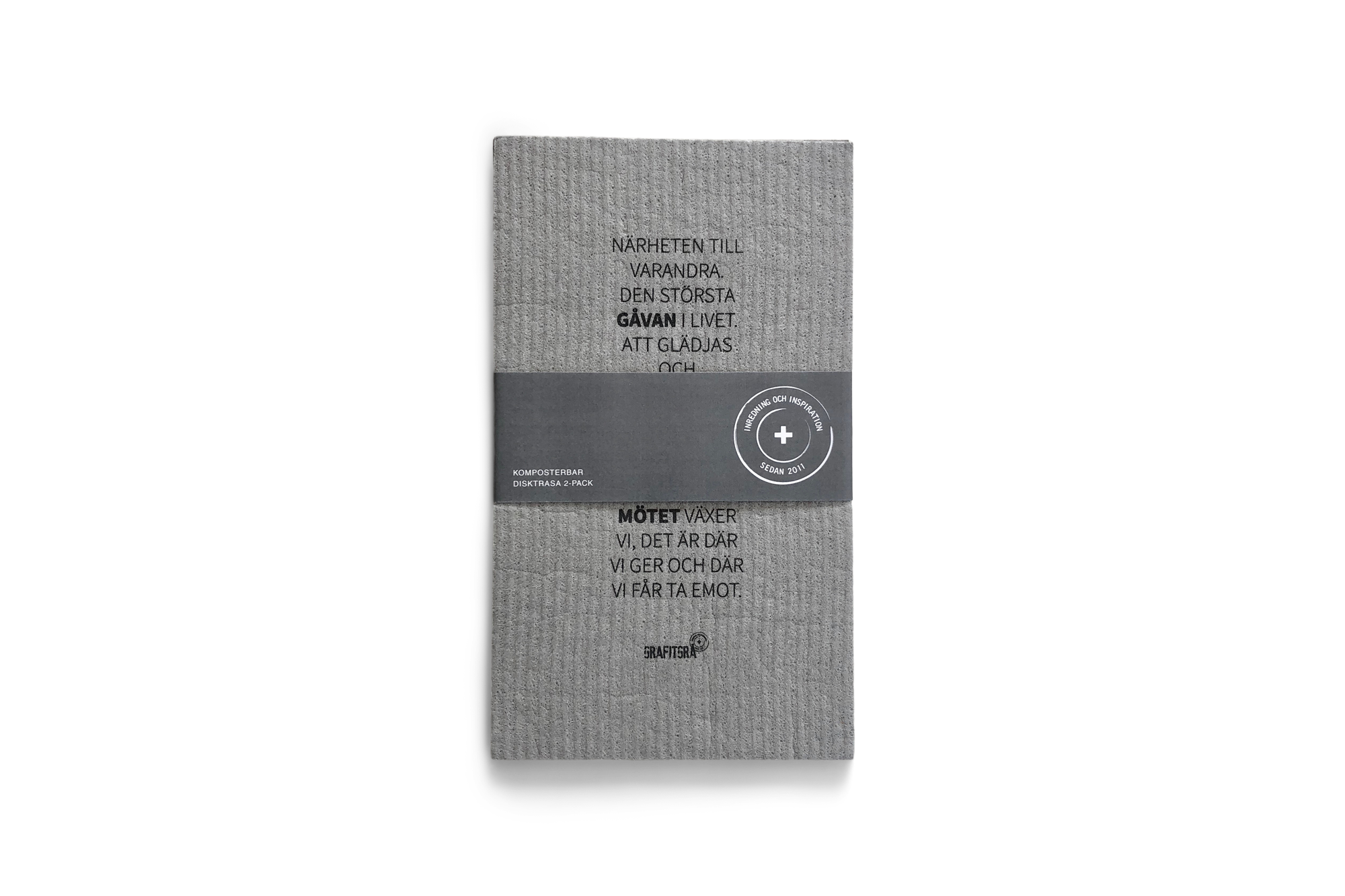 En grå disktrasa i 2-pack. Ena disktrasan bär en text och den andra bär Grafitgrås sigill.