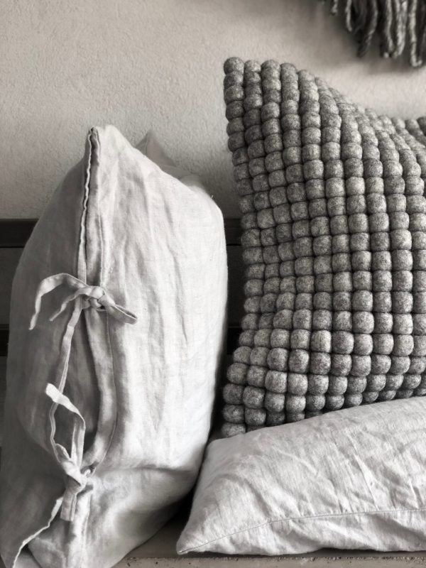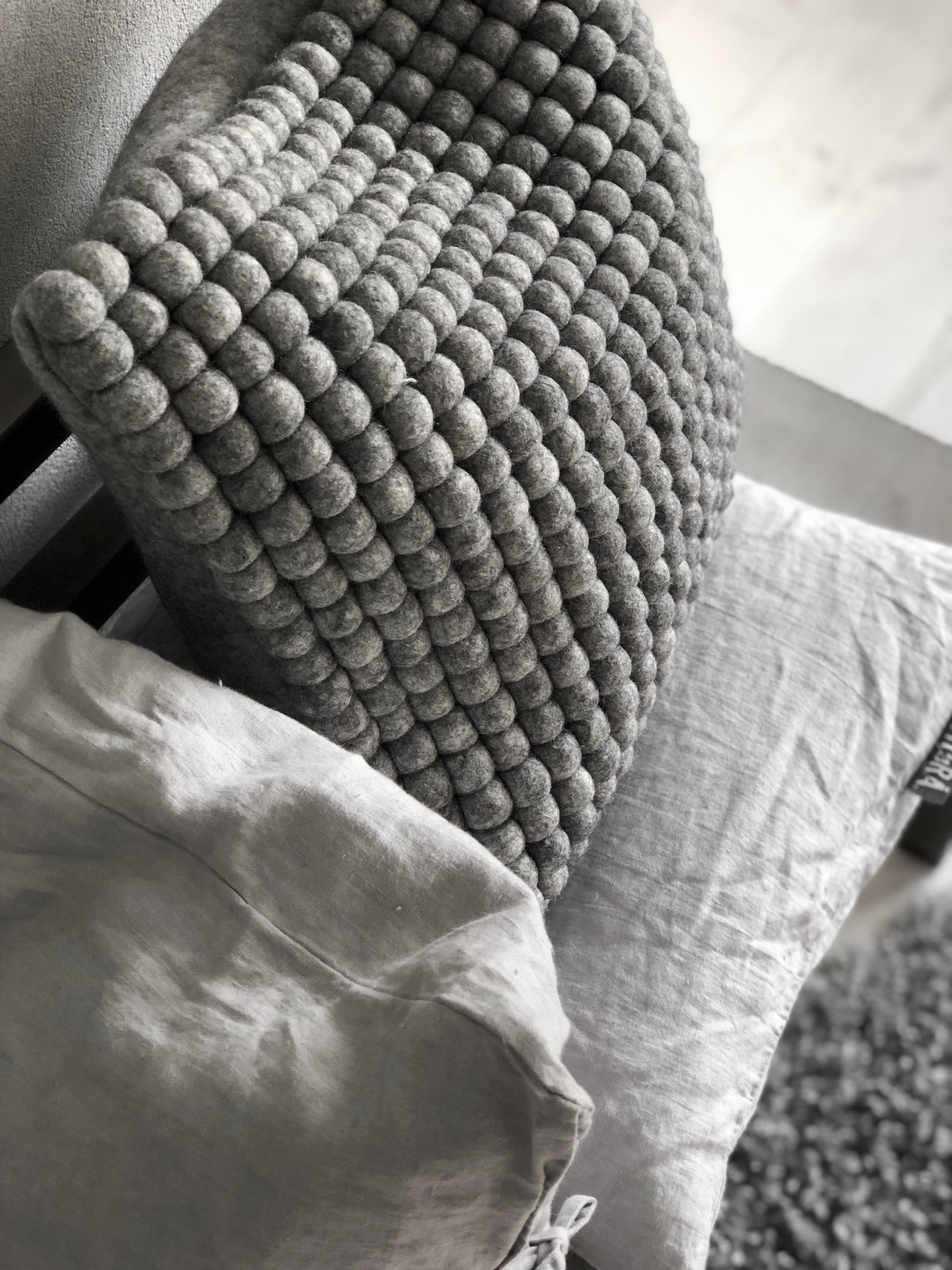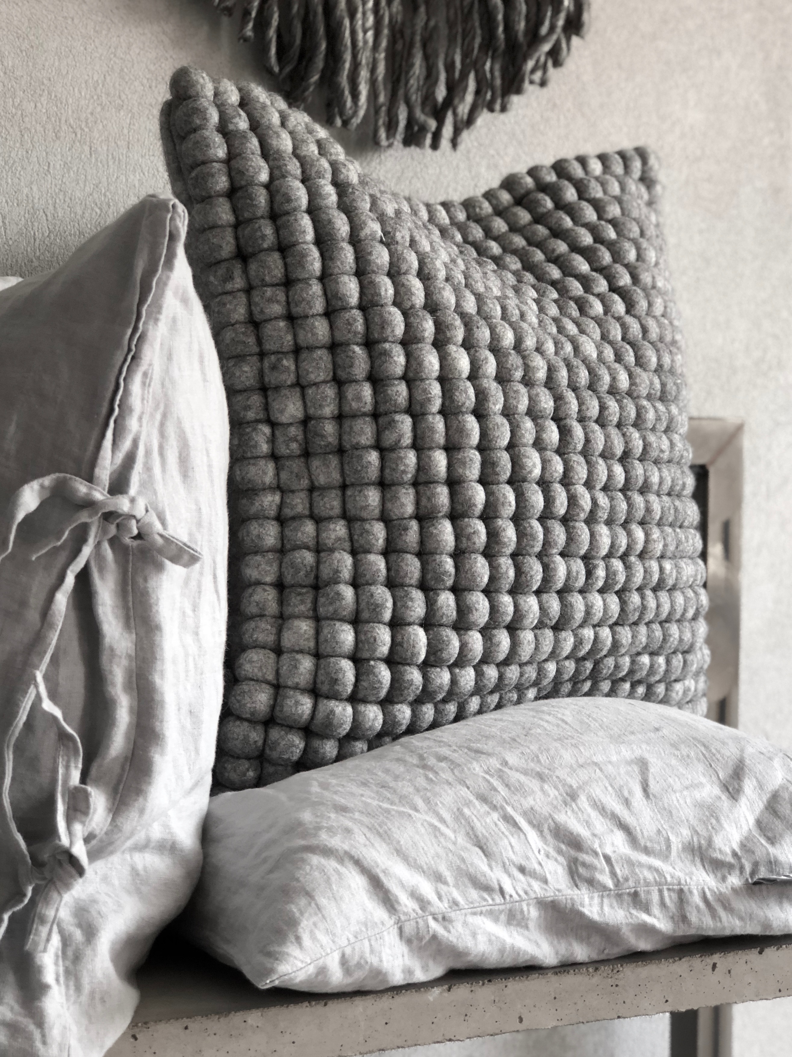 Handtovat kuddfodral med vackra bollar som sytts samman till en vacker helhet. Vacker kudde som gör sig både i soffan eller på golvet.