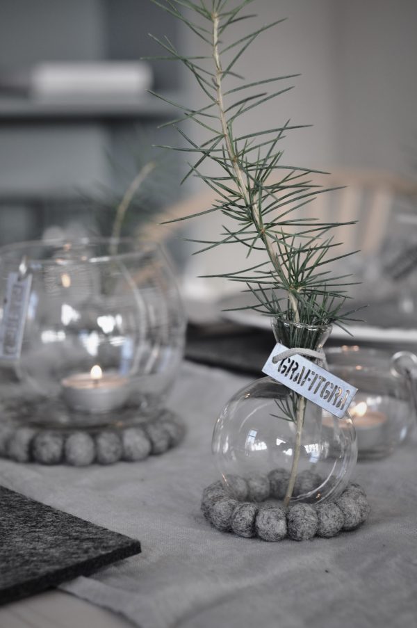 En fin ring av ullbollar. Passar bra att kombinera med Glasvas 10 & Glasvas 12. Fin detalj att hänga i granen eller använda som nyckelring.