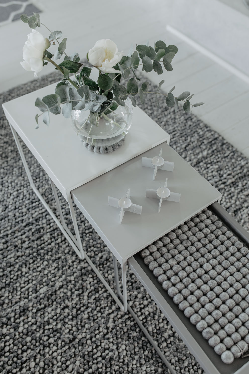 Detta underlägg är tillverkat av handtovad ull. Varje ullboll tovas för hand och sys sedan ihop till sin helhet. Ett fantastiskt hantverk. Det är 100% ull av högsta kvalité.